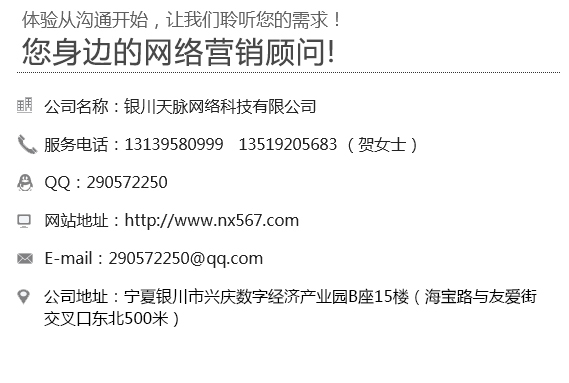 版權(quán)所有:銀川天脈網(wǎng)絡(luò)科技有限公司,3000多家客戶的選擇,15年專(zhuān)注創(chuàng)新! 寧ICP備07000915號(hào)-1