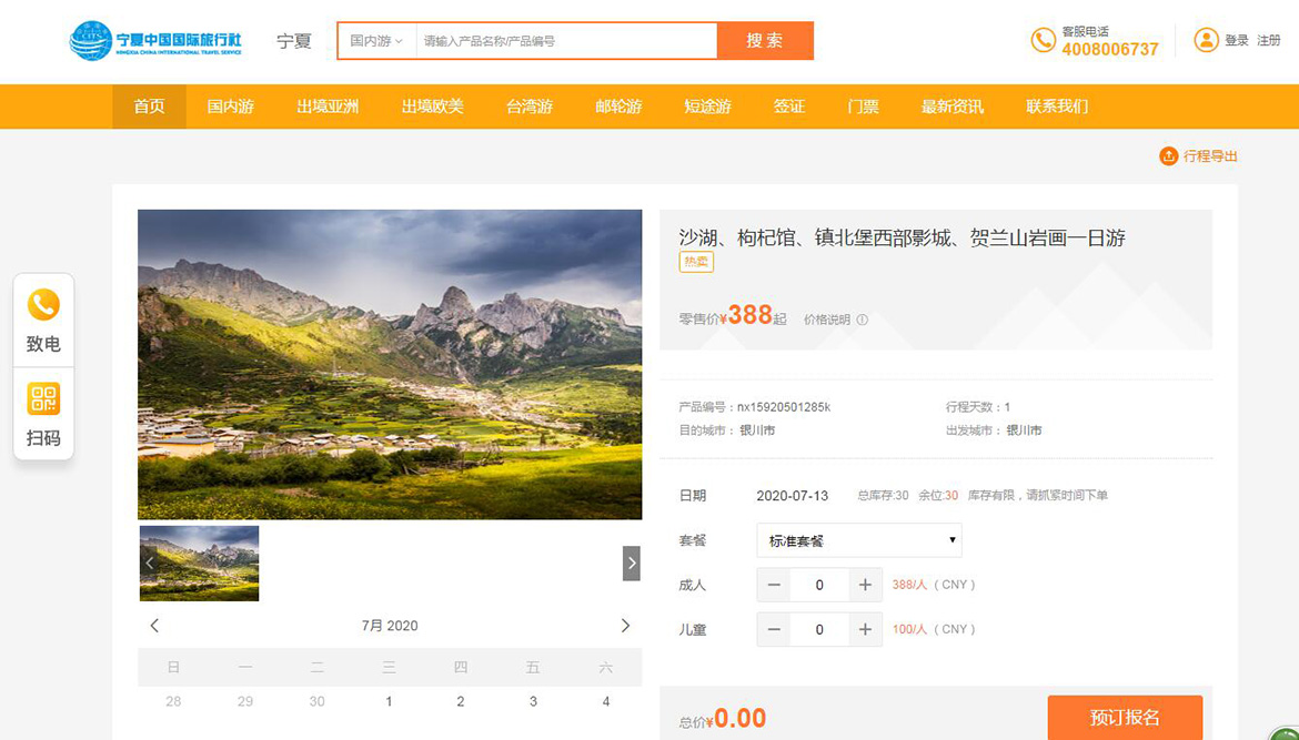 寧夏中國(guó)旅行社有限公司是寧夏銀川旅行社的龍頭企業(yè),經(jīng)國(guó)家旅游局批準(zhǔn),工商局注冊(cè)的國(guó)際旅行社。寧夏中旅提供出境旅游、港澳旅游、臺(tái)灣旅游、自由行、個(gè)性旅游定制