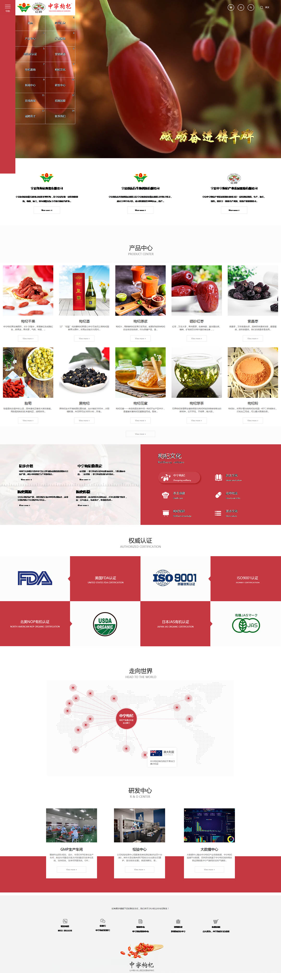 寧夏中寧枸杞產(chǎn)業(yè)發(fā)展股份有限公司是一家集枸杞種植、生產(chǎn)、加工、銷售、服務(wù)于一體的全產(chǎn)業(yè)鏈、輕資產(chǎn)股份制公司。公司以振興中寧枸杞產(chǎn)業(yè)為己任,立足技術(shù)創(chuàng)新、體制創(chuàng)新、服務(wù)創(chuàng)新、模式創(chuàng)新,逐步探索總結(jié)中寧枸杞產(chǎn)業(yè)高質(zhì)量發(fā)展之路。創(chuàng)立“7+1”現(xiàn)代化農(nóng)業(yè)種植模式,率先推行“龍頭企業(yè)+合作社+農(nóng)戶”的訂單生產(chǎn)模式,將基地作為公司第一車間打造