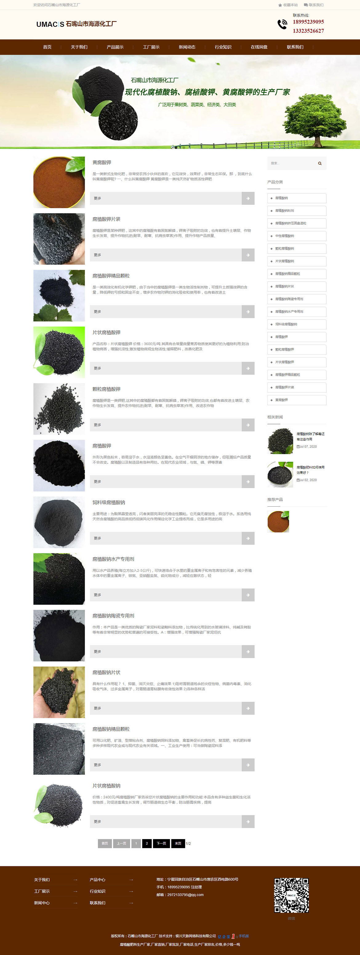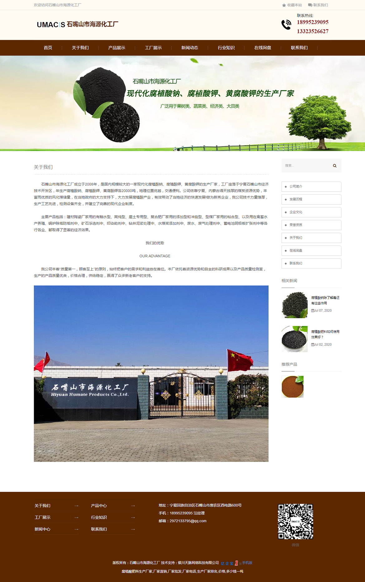 石嘴山市海源化工廠成立于2008年,是國內(nèi)規(guī)模較大的一家現(xiàn)代化腐植酸鈉、腐殖酸鉀、黃腐酸鉀的生產(chǎn)廠家,工廠座落于寧夏石嘴山市經(jīng)濟技術(shù)開發(fā)區(qū),年生產(chǎn)腐植酸鈉、腐植酸鉀、黃腐酸鉀各20000噸,地理位置優(yōu)越,交通便利