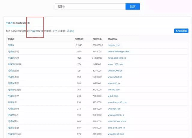 我們以軍事網(wǎng)站為例,通過5118的行業(yè)詞庫,我們獲取了軍事644萬的關(guān)鍵詞。從中我們找到了所有的根詞(根詞就是其長尾詞最多的詞,也就意味著圍繞這個(gè)詞搜索最豐富的詞,同時(shí)用百度搜索量做為輔助參數(shù))。