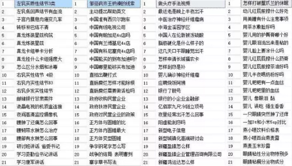 另外,每個長尾自身的長尾詞個數(shù)、百度收錄量、歷史競價公司數(shù)量、競價檢索量,起到了確定內(nèi)容生產(chǎn)的優(yōu)先級作用,通過這些參數(shù)篩選,能夠決定哪些長尾詞需要優(yōu)先安排編輯人員生產(chǎn)內(nèi)容,或者虛擬發(fā)布問題讓用戶自己產(chǎn)生內(nèi)容,同時又將這些關(guān)鍵詞放入其他對手中進(jìn)行針對性的采集,確保自己的內(nèi)容覆蓋面絕對不落后與對手,甚至領(lǐng)先于其他的對手。