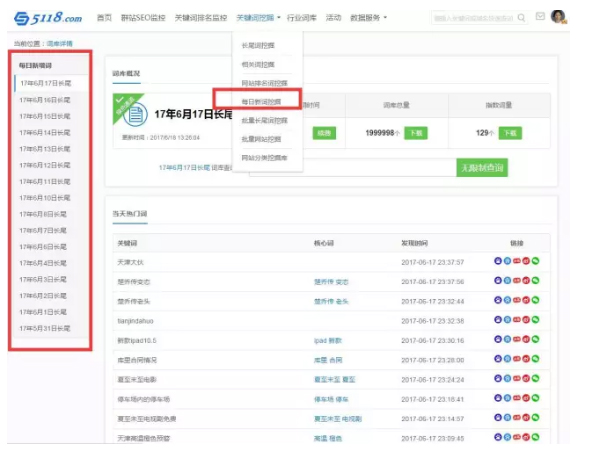雖然大部分用戶都用不到這樣大量的長尾詞,但我們的會員其中有一部分是綜合類網(wǎng)站,為了讓你們能夠享受到這樣的便利,5118特意制作了一個每日的“最新熱門詞”的欄目,以及海量的新詞挖掘權(quán)限,讓我們的用戶能夠每天按需享用5118所有更新的百萬級長尾詞庫。