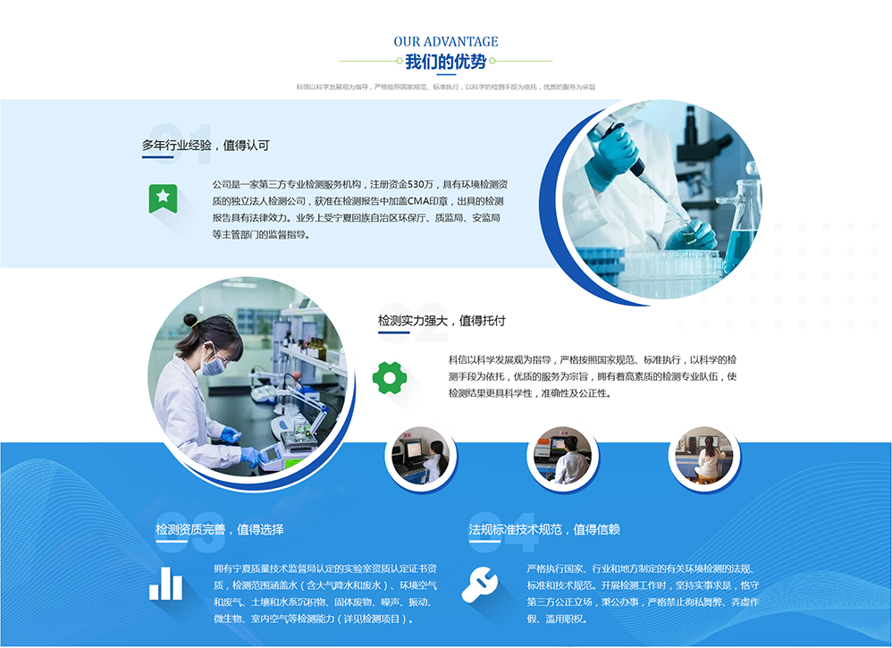 吳忠市科信環(huán)境檢測有限公司成立于2013年12月18日,地址位于吳忠市利通區(qū)友誼西路1020號,是一家第三方專業(yè)檢測服務(wù)機(jī)構(gòu),注冊資金530萬,具有環(huán)境檢測資質(zhì)的獨(dú)立法人檢測公司,獲準(zhǔn)在檢測報告中加蓋CMA印章,出具的檢測報告具有法律效力。業(yè)務(wù)上受寧夏回族自治區(qū)環(huán)保廳、質(zhì)監(jiān)局、安監(jiān)局等主管部門的監(jiān)督指導(dǎo)。