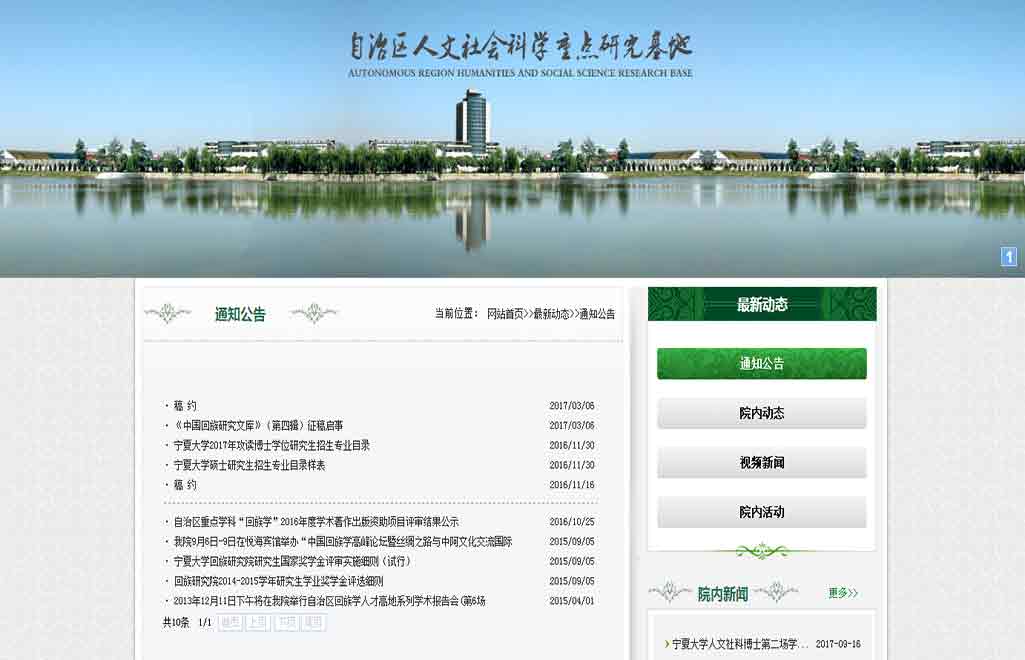 寧夏大學(xué)回族研究院的前身是始建于1986年的寧夏大學(xué)回族文學(xué)研究所,1998年更名為寧夏大學(xué)回族文化研究所,2003年擴展為寧夏大學(xué)回族研究中心,2008年定名為寧夏大學(xué)回族研究院。研究院以“兼容并包、寧靜致遠”為理念,努力建設(shè)國內(nèi)著名、具有國際影響力的中國民族學(xué)(回族學(xué))研究、教學(xué)機構(gòu)。